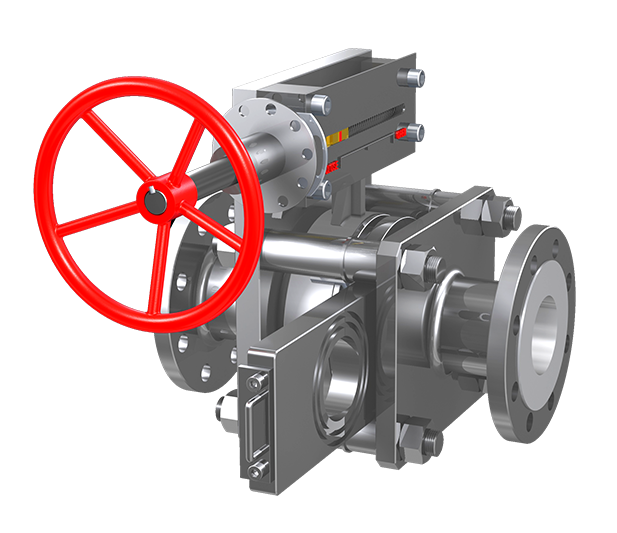 根據(jù)金屬硬密封三偏心蝶閥的機(jī)構(gòu)進(jìn)行改進(jìn),研制出雙向流硬碰硬旋球閥。旋球閥廣泛用于水泵出口端、管網(wǎng)系統(tǒng)、回收系統(tǒng)、高位水槽、易水淹的污水系統(tǒng)、防倒流系統(tǒng)等